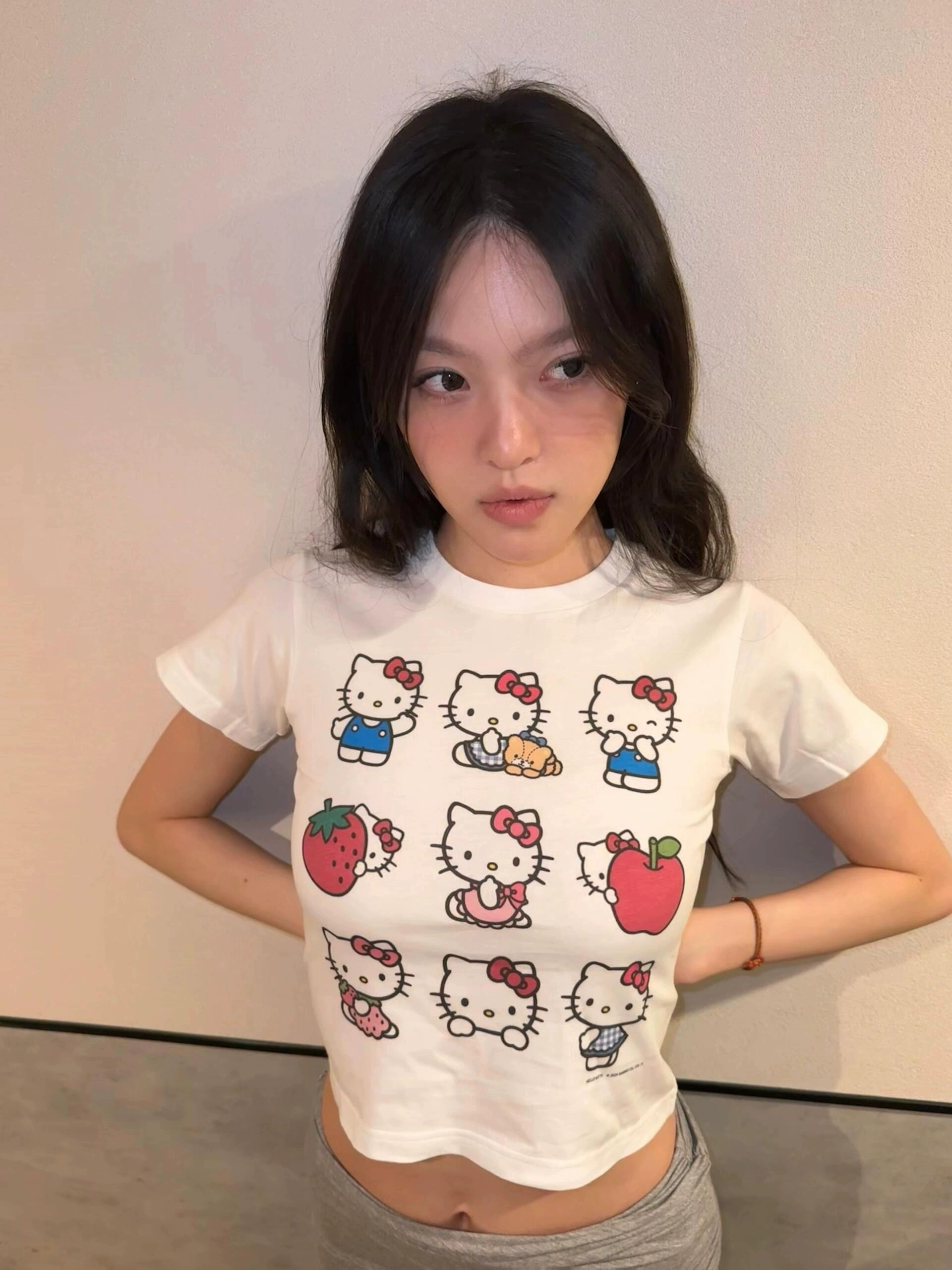 Katie Cat’s Shoulder Summer White Slim Short Sleeve T-shirt
