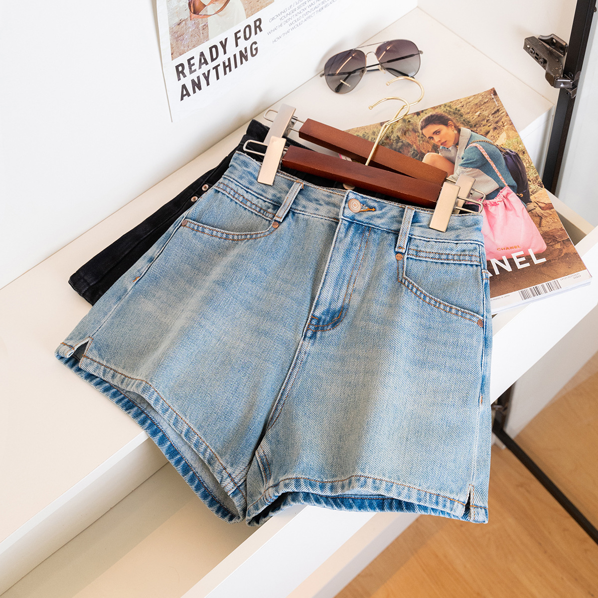 don’t pick body Denim shorts! 2024 New Style Thin Simple All-match Slim-fit Blue and Black Pants Women’s 745