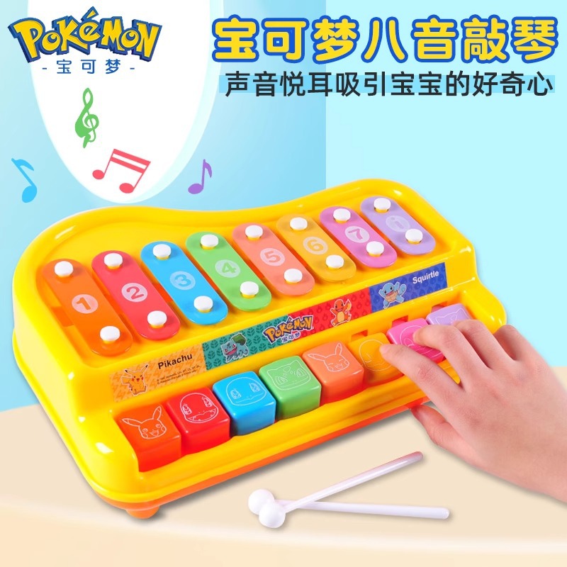 Baokemeng eight-tone percussion piano Pikachu children’s toy hand percussion piano baby two-in-one Multi-functional fun percussion piano