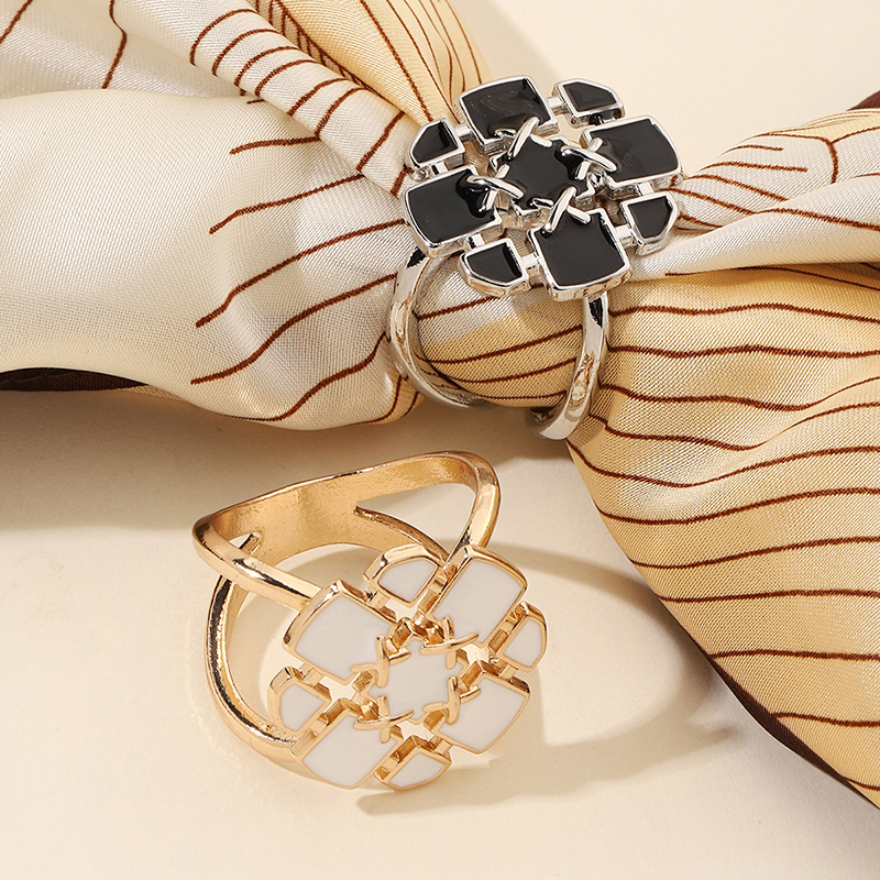 Xiaoxiang retro style metal hollow round plaid with silk scarf corner buckle