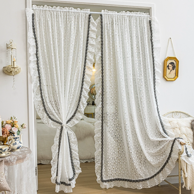 Atmospheric gauze curtain cream color semi-blackout bay window lace