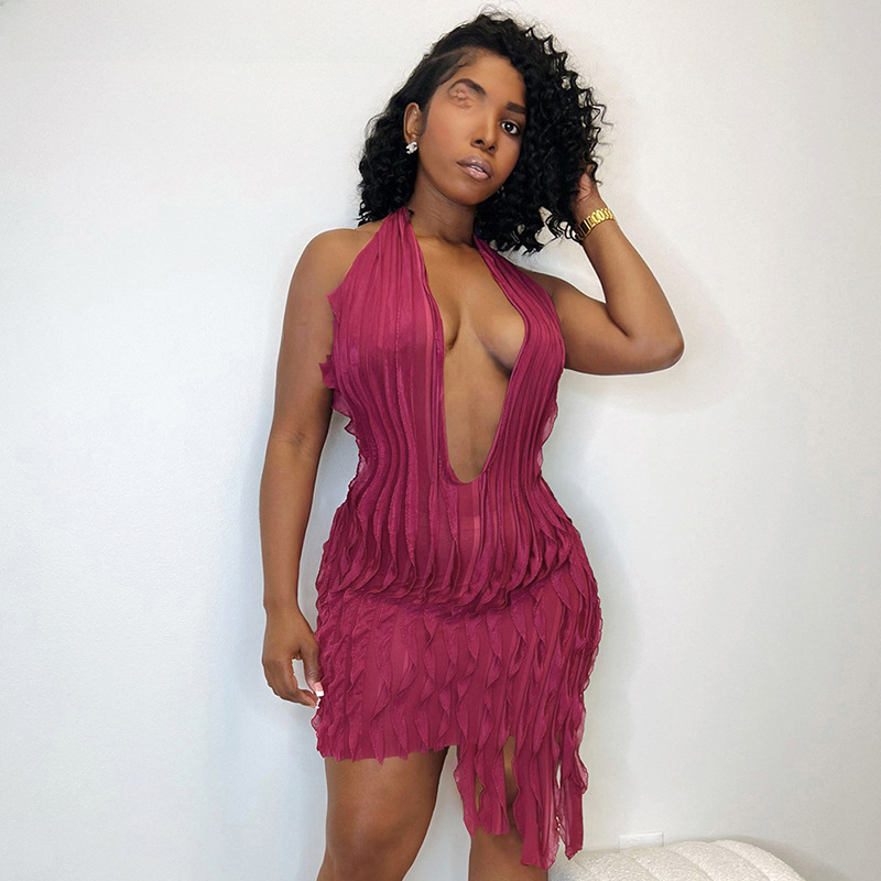 D23DS210 sexy broken style hollow-out halter hip skirt European and American hot girl slim backless party short skirt