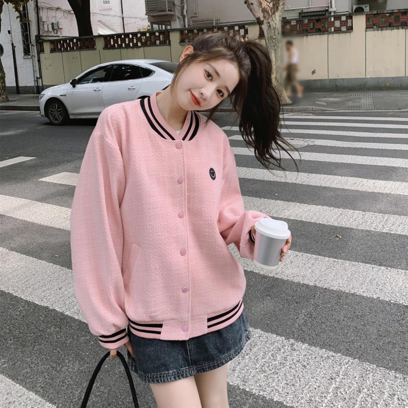 Pink preppy style baseball jacket for women Spring and Autumn 2024 New French sweet loose casual age-reducing short jacket