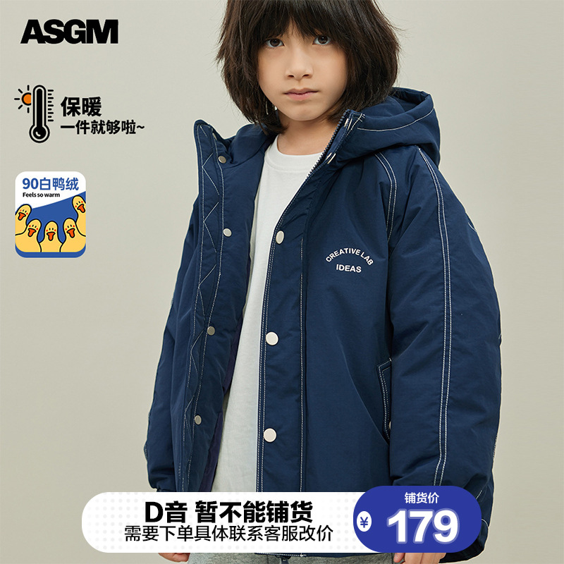 ASGM outdoor workwear boys’ down jacket mid-length winter children’s new western style coat thickened trendy children’s
