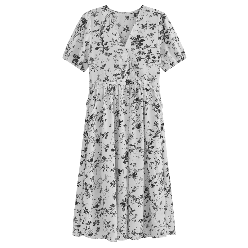 Gentle summer V-neck black slim floral dress