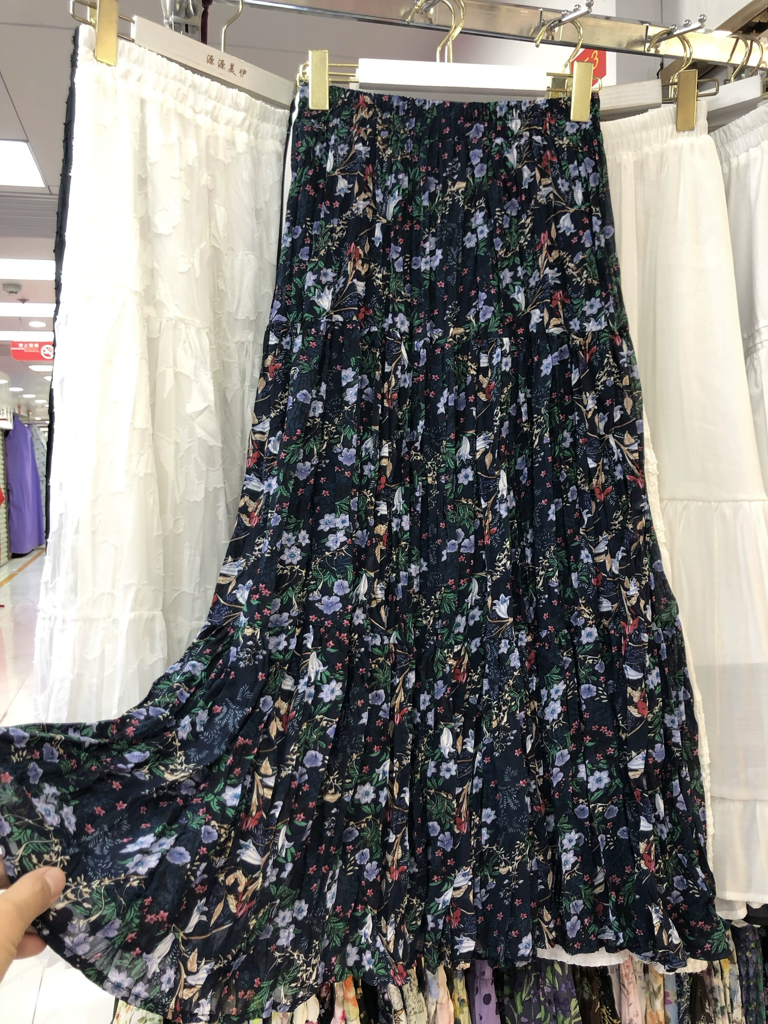Chiffon pleated floral skirt for women in summer retro style mid-length versatile big skirt long skirt thin