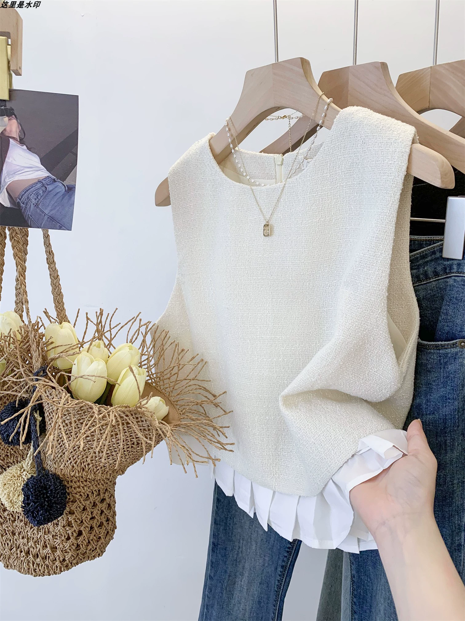 2023 Chanel style short coat women’s autumn and winter New Pearl leather coat round neck slim-fit socialite top