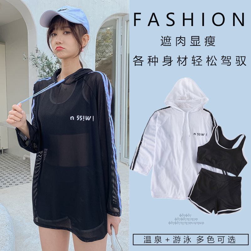 Sports two-piece swimsuit women’s boxer bikini three-piece conservative swimsuit belly-covering slimming hot spring student swimsuit