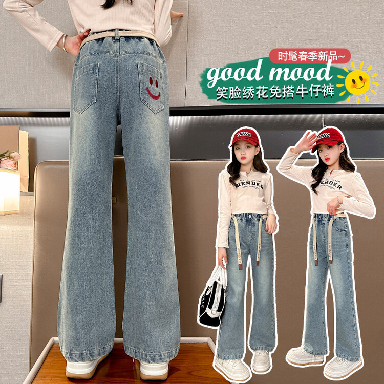 2024 girls’ jeans Spring and Autumn new children’s spring casual pants outer wear girl’s big girl’s micro flared pants