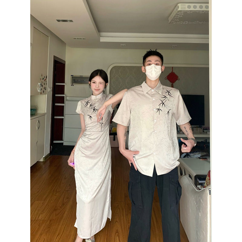 A generation of 2024 real shot new Chinese style improved bamboo embroidery slim cheongsam sweethearts outfit