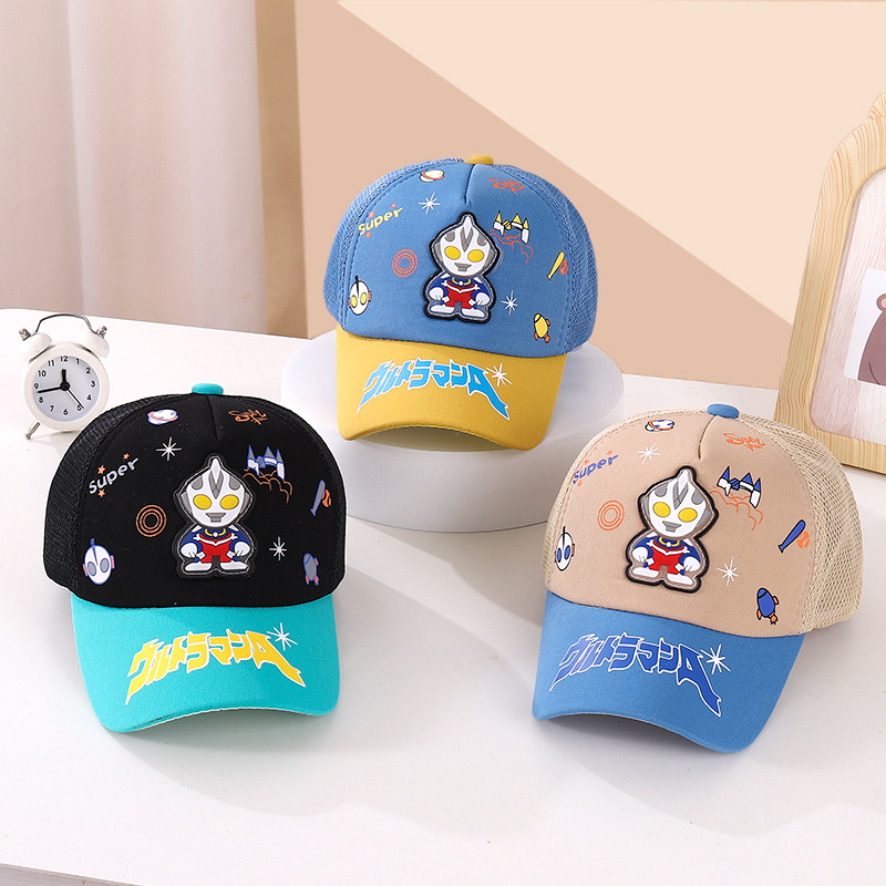 Cartoon leather label summer thin baseball cap mesh sunshade hat cute cartoon baby boys and girls duck tongue net cap