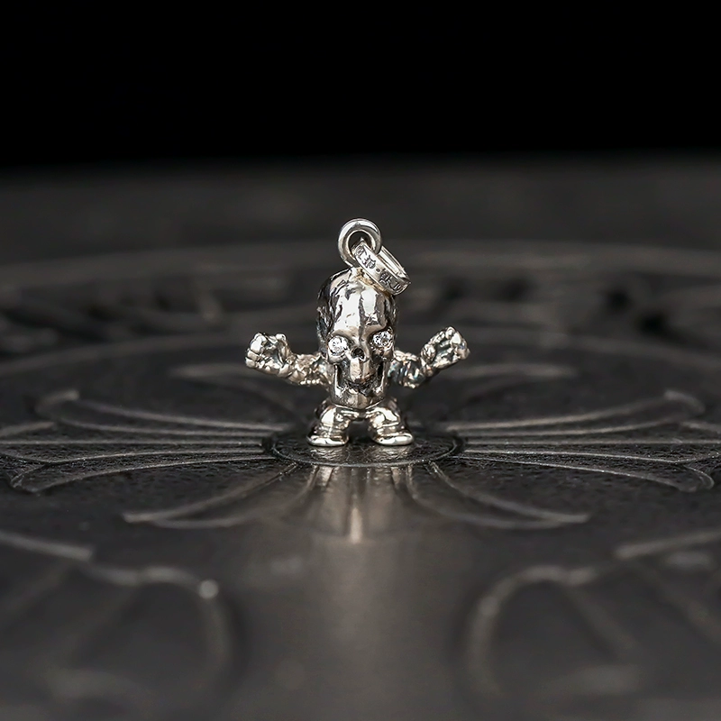 Wild Horse Manor handmade personalized jewelry diamond crystal foti skull big head doll skull 925 sterling silver pendant