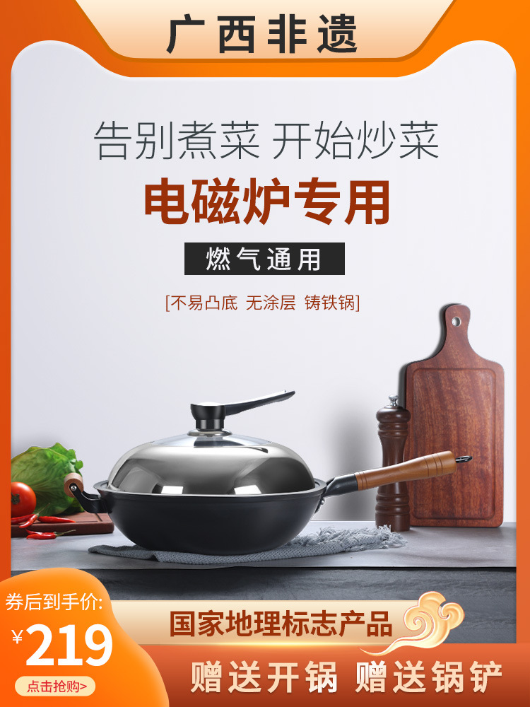 Z655 induction cooker iron wok nitrided cast iron cooking uncoated pig iron household gas stove Luchuan pan