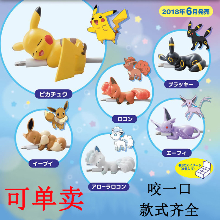 Bite a mobile phone data line protective cover sleeping Bikachu cartoon Ibe hold bite line device spot wholesale