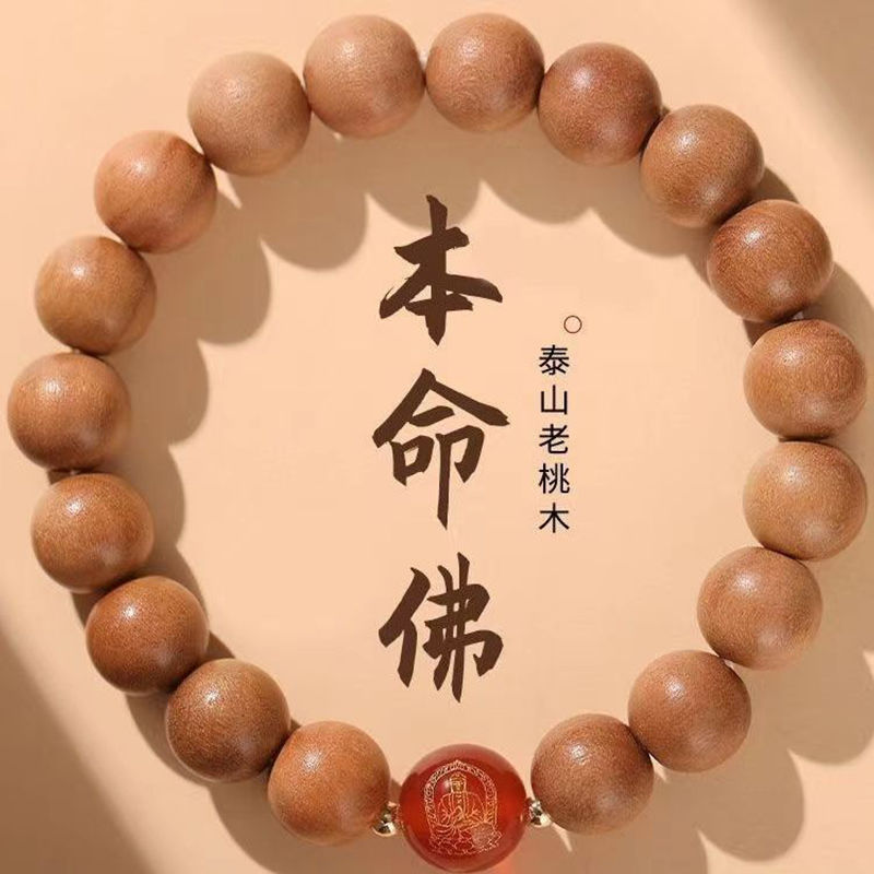 Natural Authentic Old Peach Wooden Bracelet Benmingfo Transporter Zodiac Bracelet Men’s and Women’s Body Protection Bracelet Meditation Beads