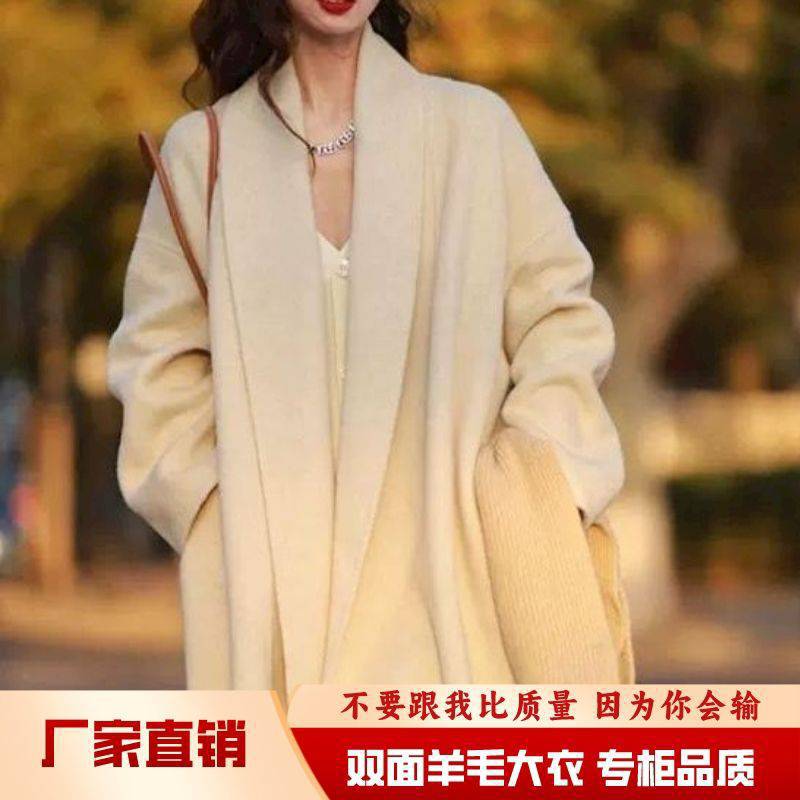 Double-sided cashmere overcoat women’s long 2023 Advanced loose tall soft glutinous woolen coat autumn and winter
