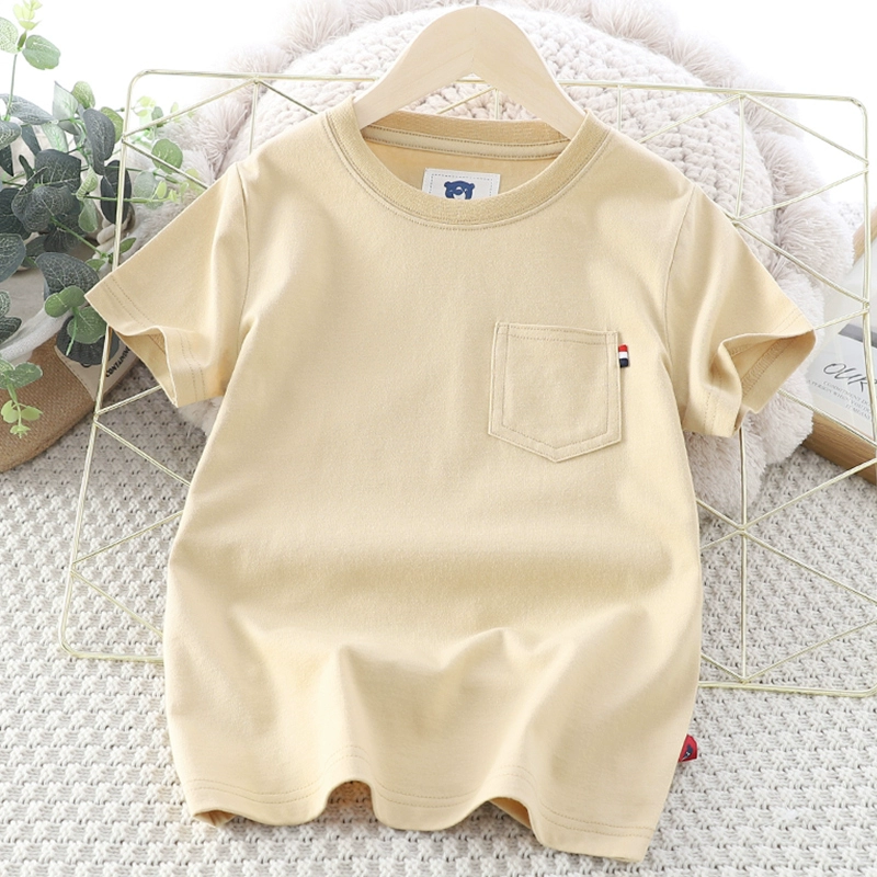 Children’s clothing thin solid color round neck sweat shirt for boys short sleeves