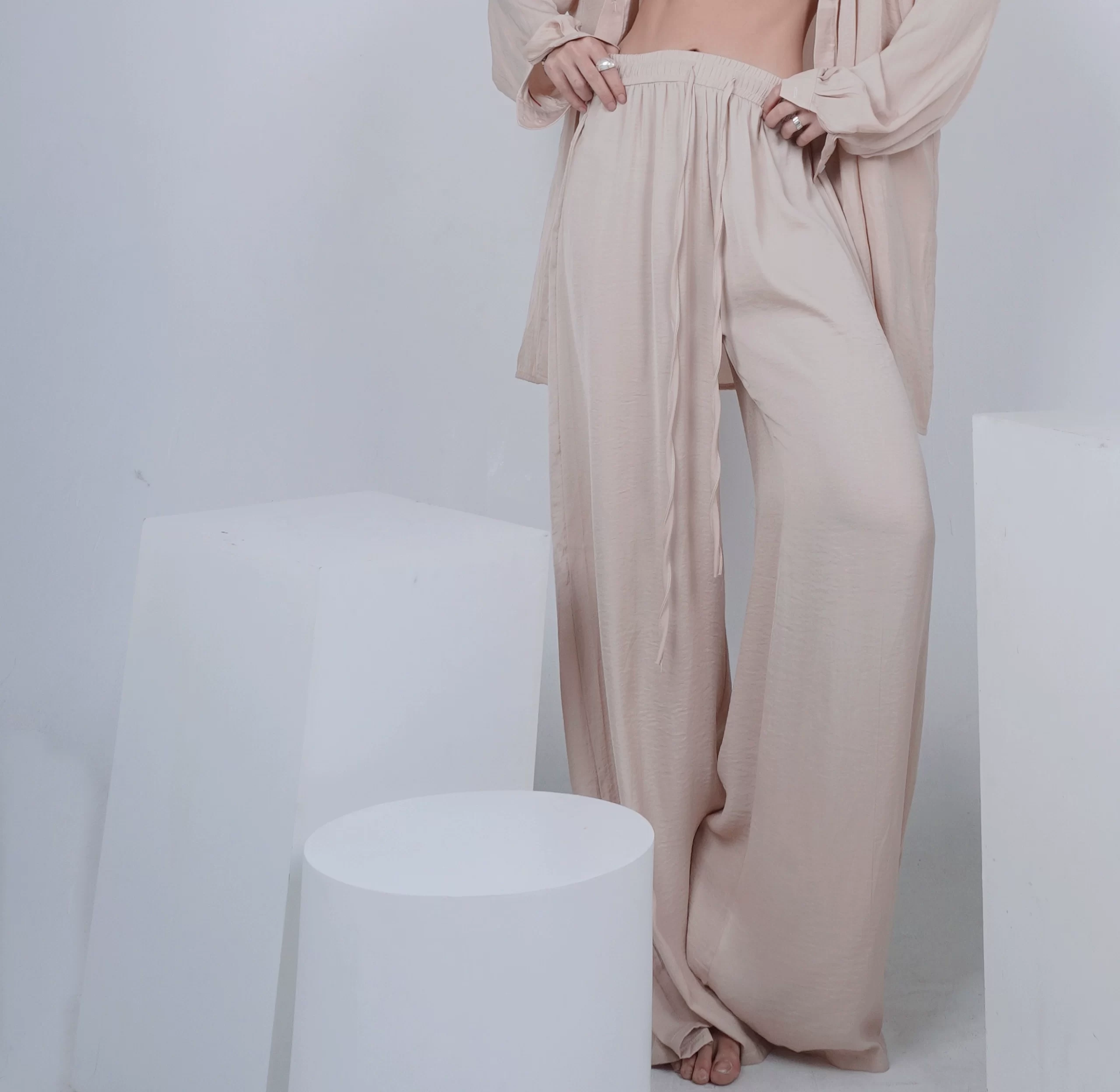 Black high waist droop casual drawstring ice silk sunscreen pants