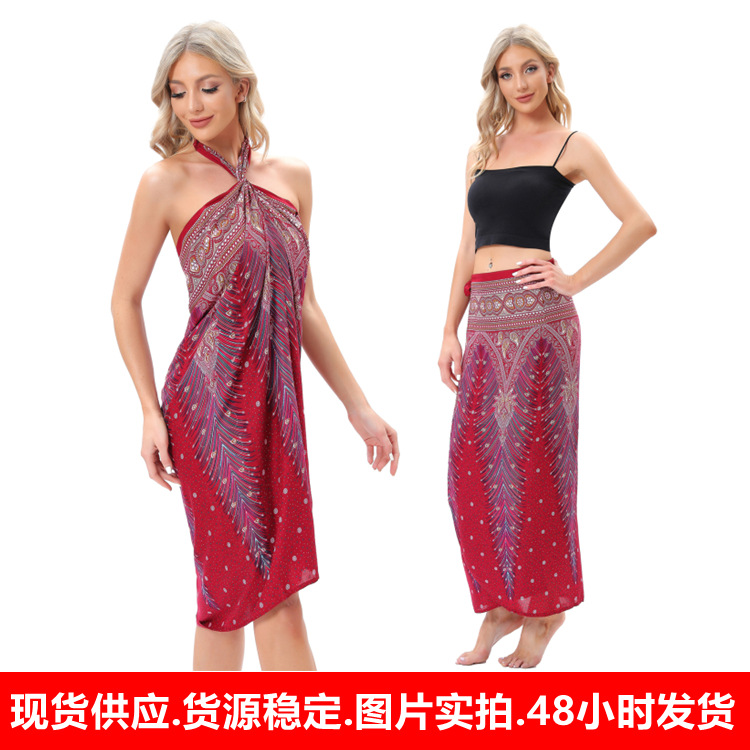 G001 Spring and Summer New Thai One-piece Casual Printed Flower Dress Two-wear Half-length Beach Towel Wrap Dress