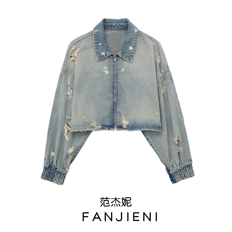 ZR foreign trade wholesale European and American style women’s ripped decoration Denim short jacket jacket 4365 271 407