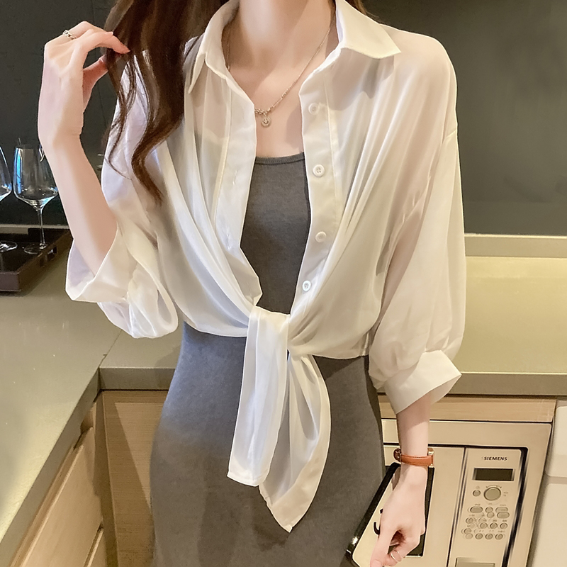 Short Chiffon Shirt Outer Wearing Small Shawl Women’s Summer Dress Sling Sunscreen Clothes Cardigan Loose Thin Top
