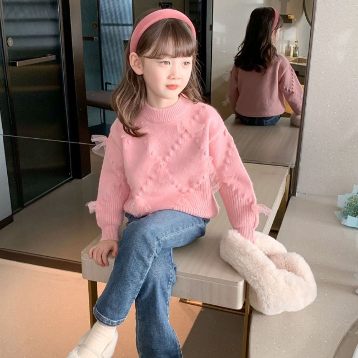 Girls’ sweater Korean style versatile new western style children’s sweater baby girls’ autumn and winter bottoming shirt children’s clothes