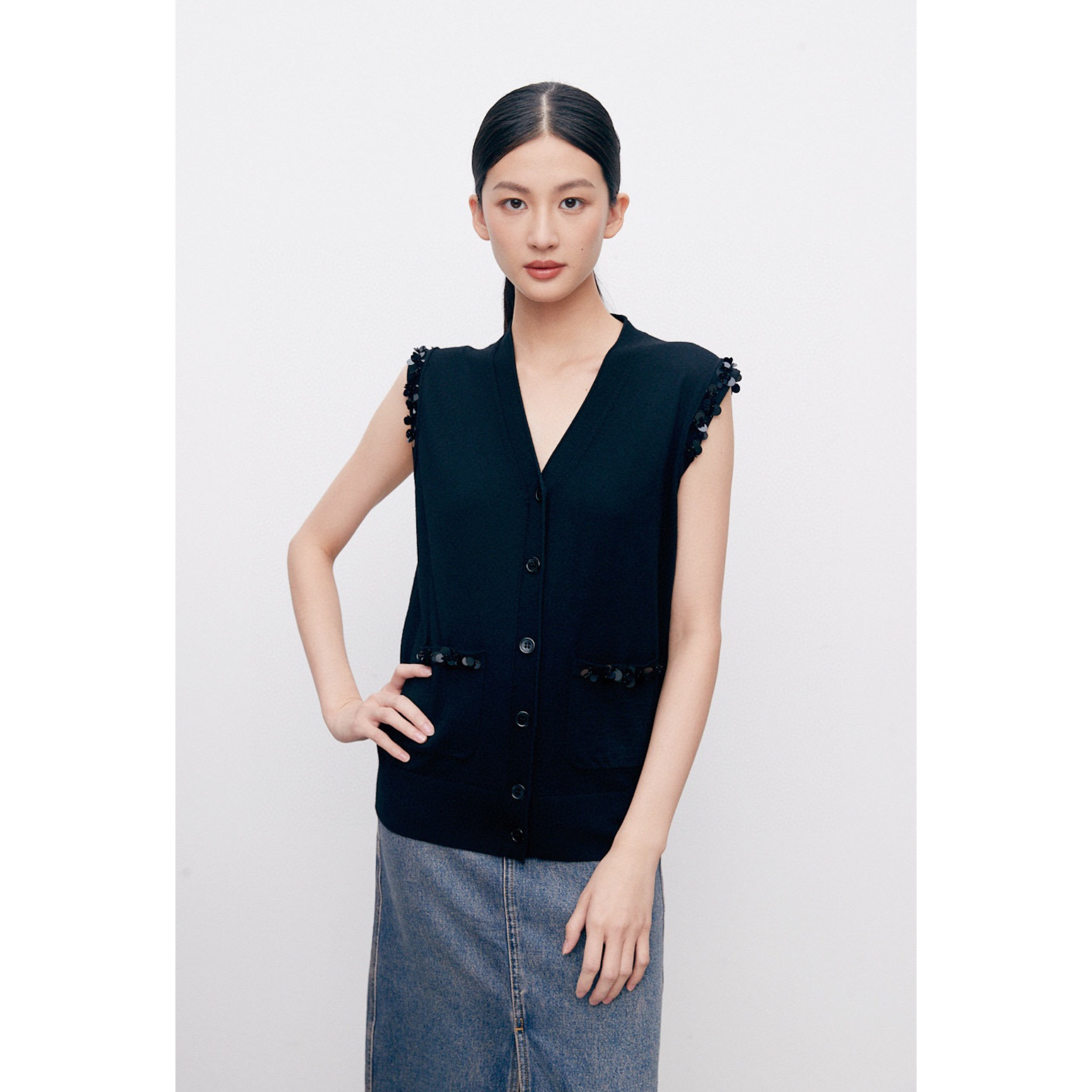 [UpperClass series] Sequin women’s woolen sweater sleeveless vest handmade beaded foreign trade fashion