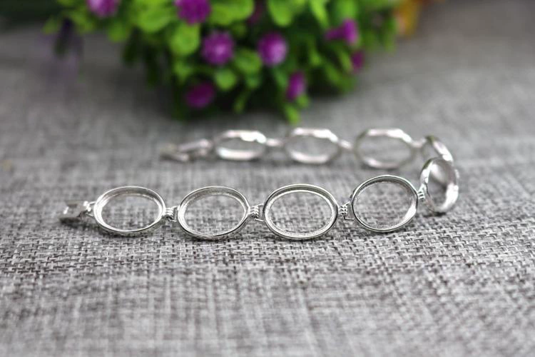 S925 sterling silver bracelet empty diy diy inlaid green pine red agate silver trim bracelet women’s model 10*14
