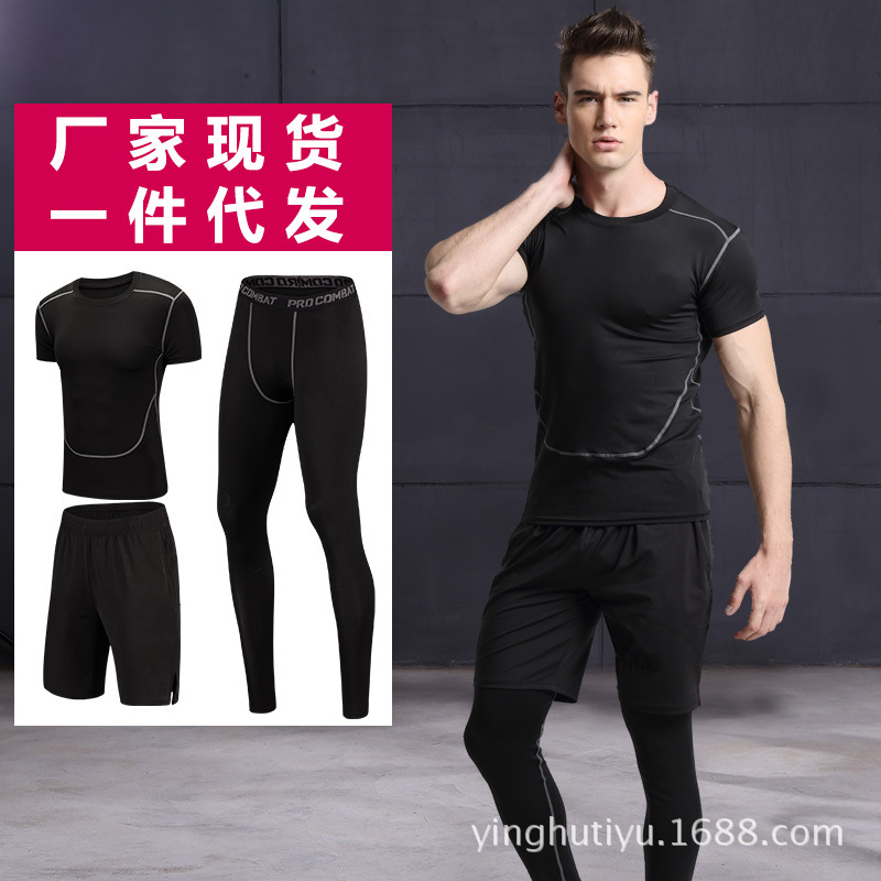 Men’s Fitness Suit Three-Piece Running Clothes Quick-Drying Tights Training Suit