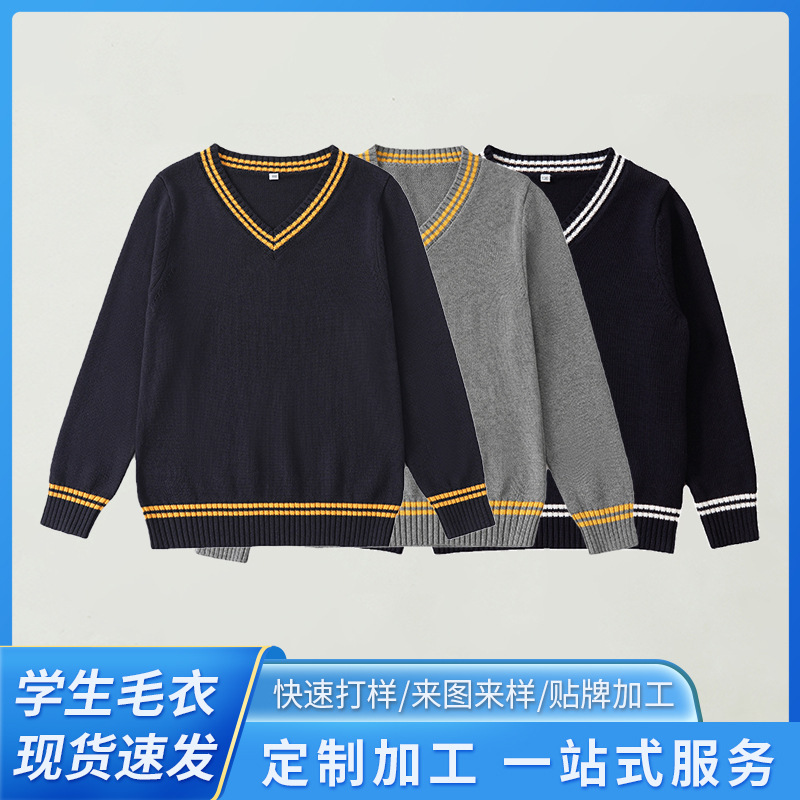 Children’s Sweater 2023 New Spring and Autumn Korean Style Chicken Heart Collar Long Sleeve Knitted Shirt School Uniform Coat Cotton Sweater