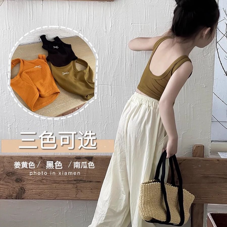 Girls’ Summer New Korean-style Backless Small Sling Children’s Bow U-neck Vest for Baby Girls 0015A024