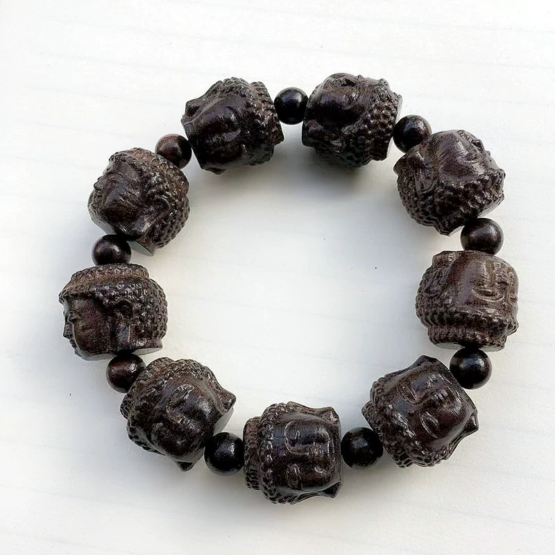 Men’s Piphica Black Sakyamuni Buddha Top King Kong Luohan Wooden Foam Beads Plasma Gray Old Material Walnut Bead Bracelet