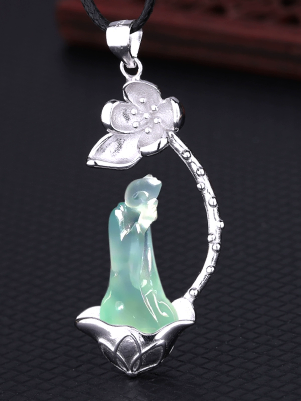 S925 sterling silver pendant empty diY inlaid beeswax jade emerald green pine Buddha pendant trap and sterling silver virtue