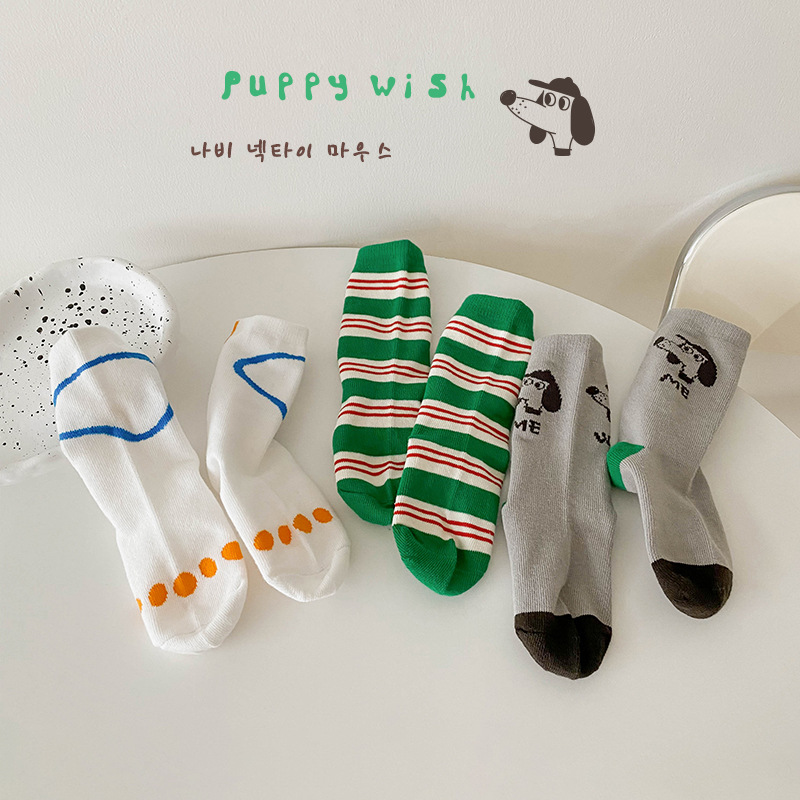 1363 children’s socks wholesale 2024 spring new puppy striped mid-calf length socks cute all-match girls’ cotton socks