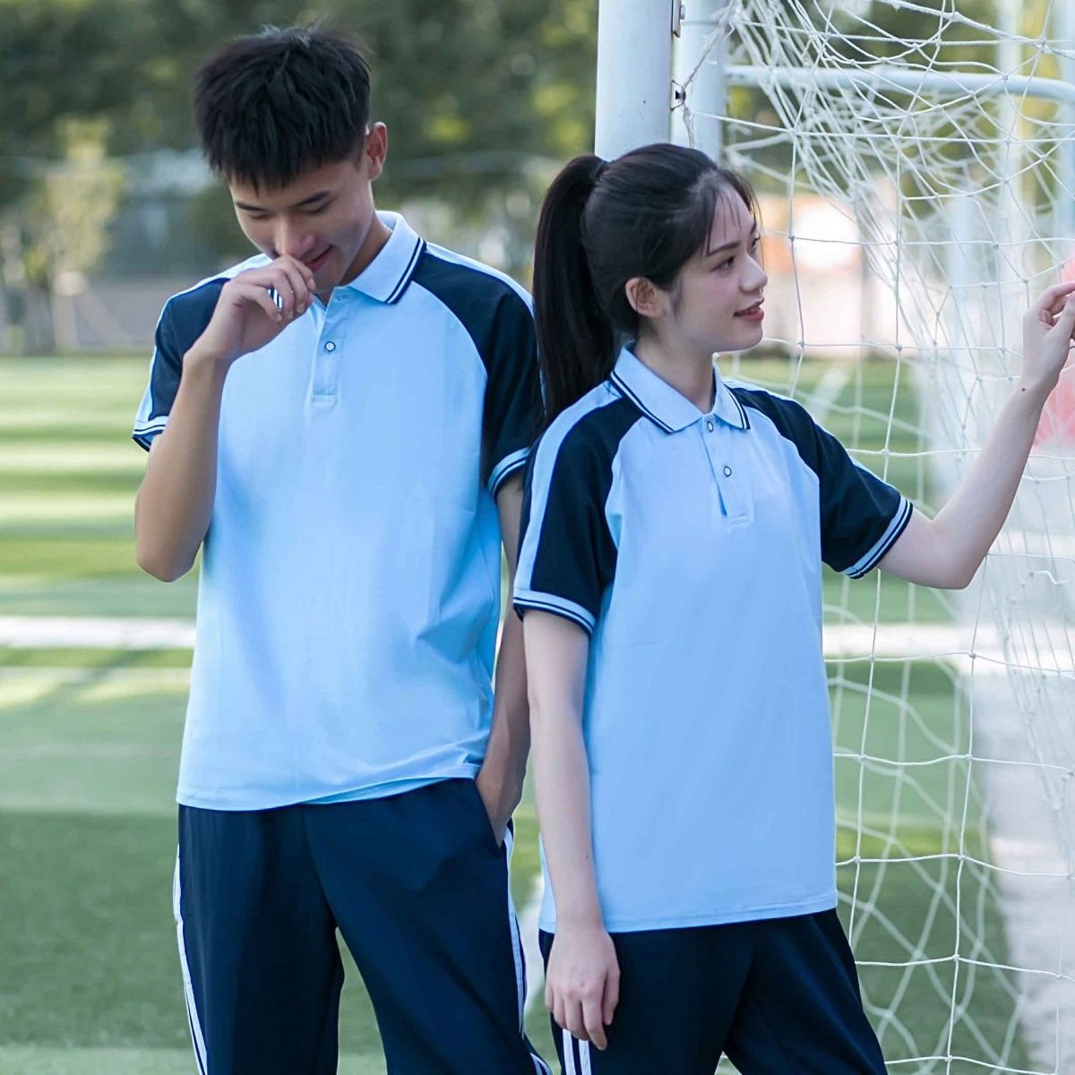 School Uniform suit Middle School Students Summer Junior High School Senior high school Primary School Students Blue Short-sleeved T-shirt Polo Shirt Thin Men’s and Women’s Class Clothes
