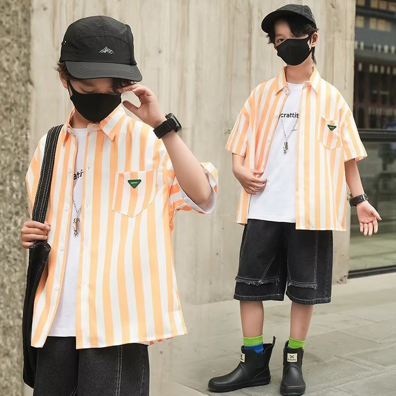 Boys’ Striped Fashion Shirt Short-sleeved Summer Thin Children’s Baby Stylish Top Trendy 2023 New Summer Fashion
