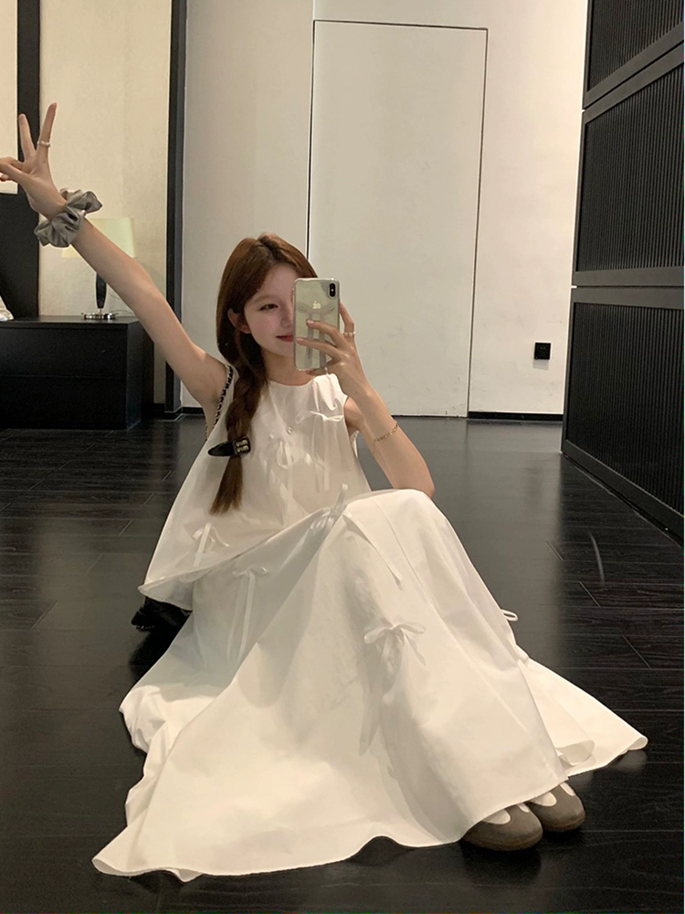 South Korea Dongdaemun tops for women 2024 new white cotton bow loose right shoulder short-sleeved T-shirt for women 6025
