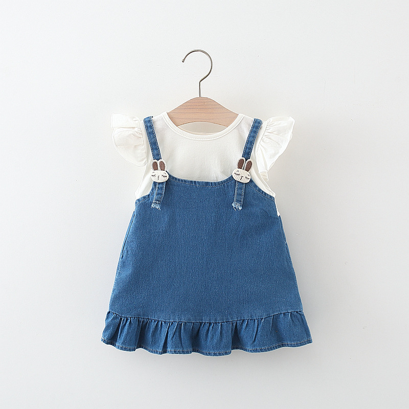Korean Style New Baby Girl Short-sleeved Strap Denim Dress Girl Stylish One-year-old Dress Huzhou Zhili Fashion