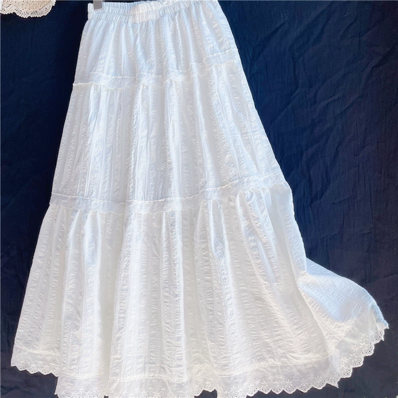 Homemade exquisite workmanship pure white embroidered midi skirt