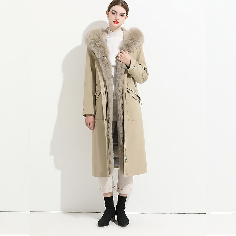 Big Fur Collar Tall Fur Long Over-the-Knee Parker Women’s Coat Removable Rex Rabbit Fur Liner Fur Jacket