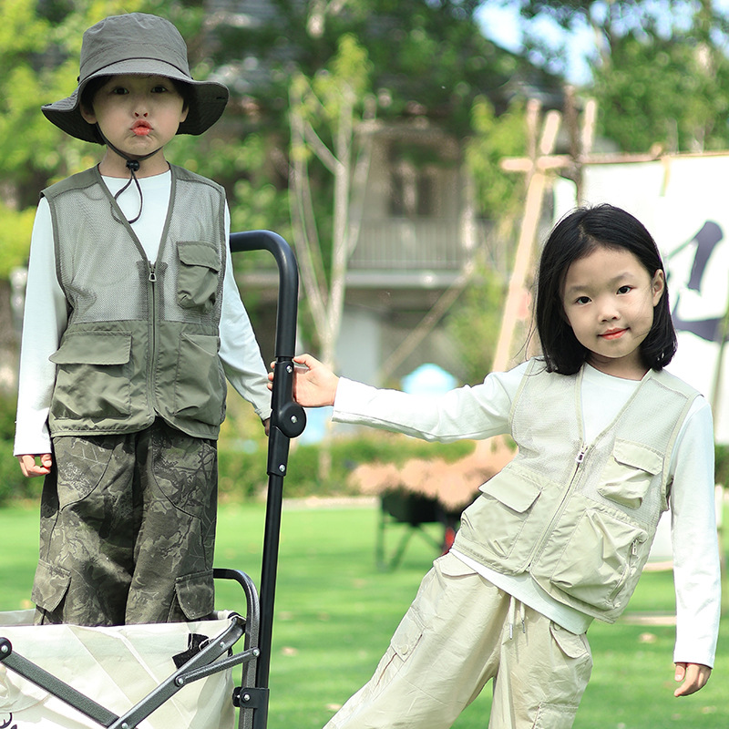 Children’s Hollow Mesh Stitching Multi-Pocket Tooling Vest Moisture-absorbing Quick-drying Outdoor Mountaineering Vest for Boys and Girls