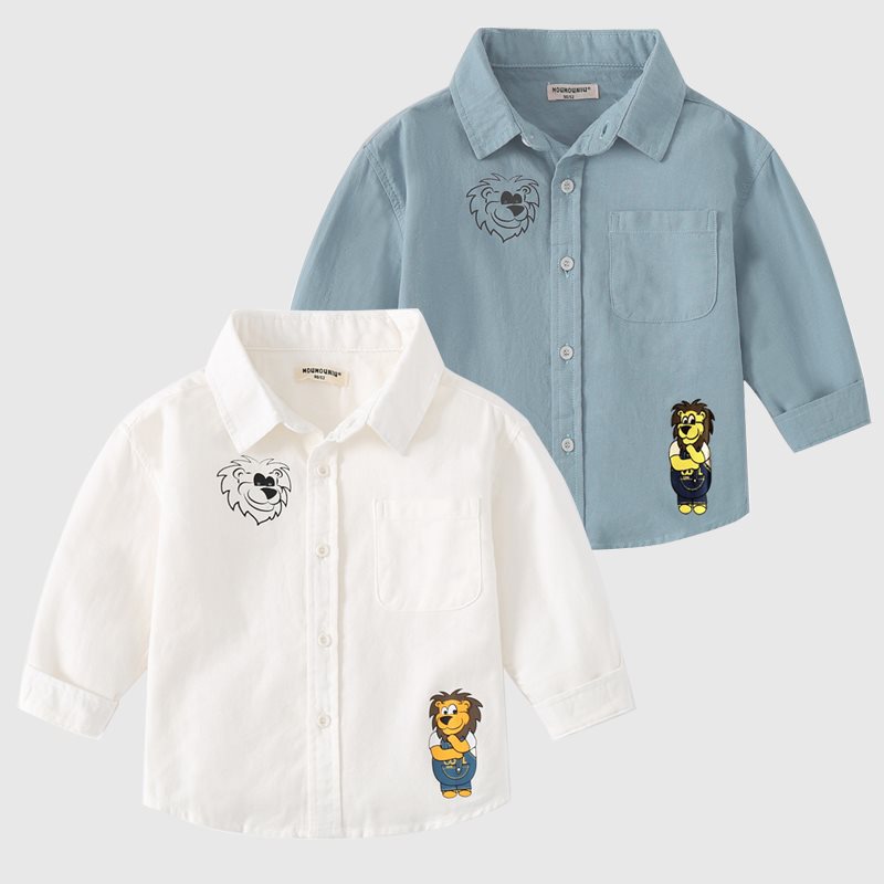 Boys Shirt Spring and Autumn 2024 New Cotton Boys Cartoon Western Style Baby Spring Casual Children’s Long Sleeve Shirt