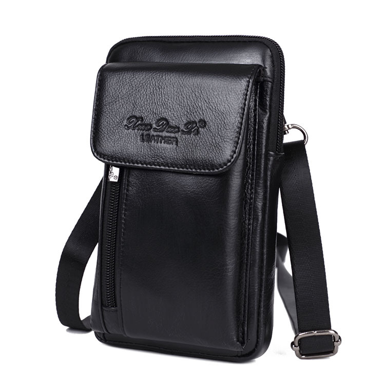 Xiaoduoli men’s messenger bag genuine leather mini shoulder bag 7-inch waist bag belt cowhide phone bag hanging bag