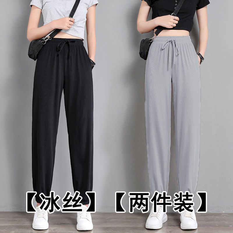 Ice Silk Sports Pants Women’s Summer Thin Loose Casual Wei Pants 2024 New Spring and Autumn Harlan Pants Fashionable Leg Pants