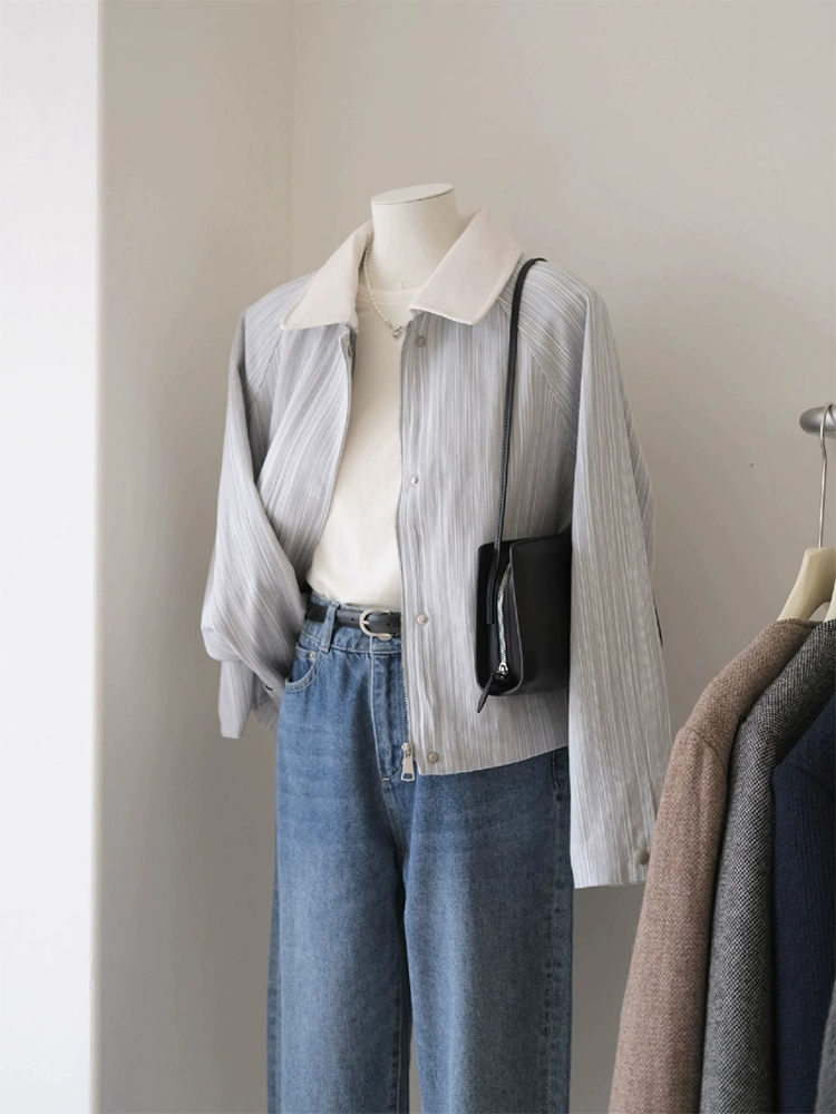 Xiaoxiangfeng striped striped stripe lapel casual loose top