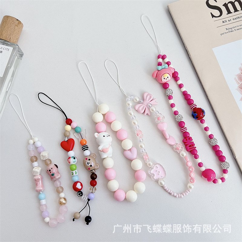 New beaded lanyard sweet cute cartoon animal jewelry accessories girl’s heart phone case anti-lost drop-resistant ornaments