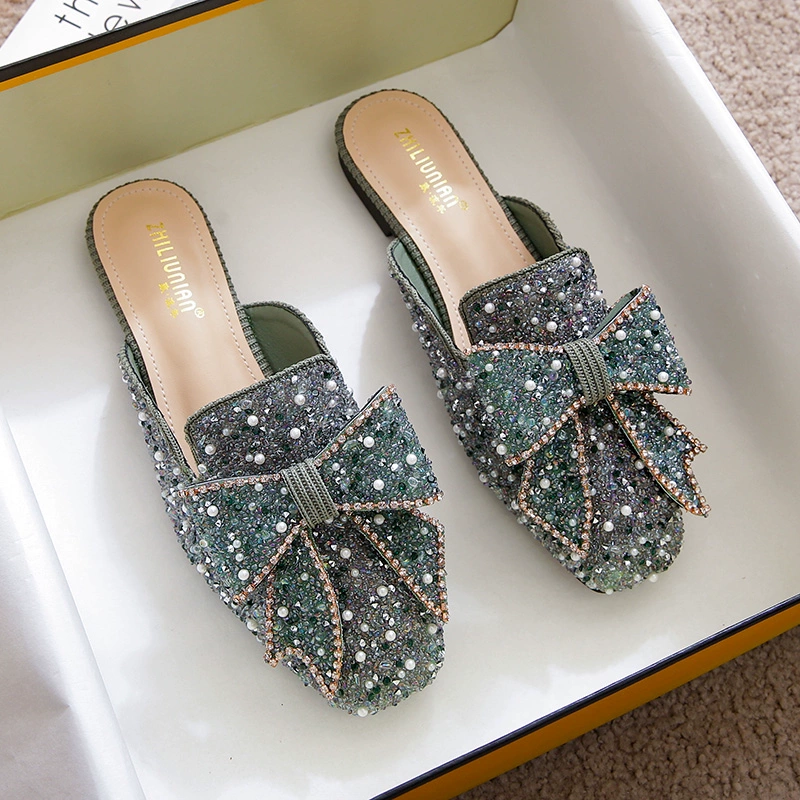 Small size soft leather Baotou INS 41 43 half slippers
