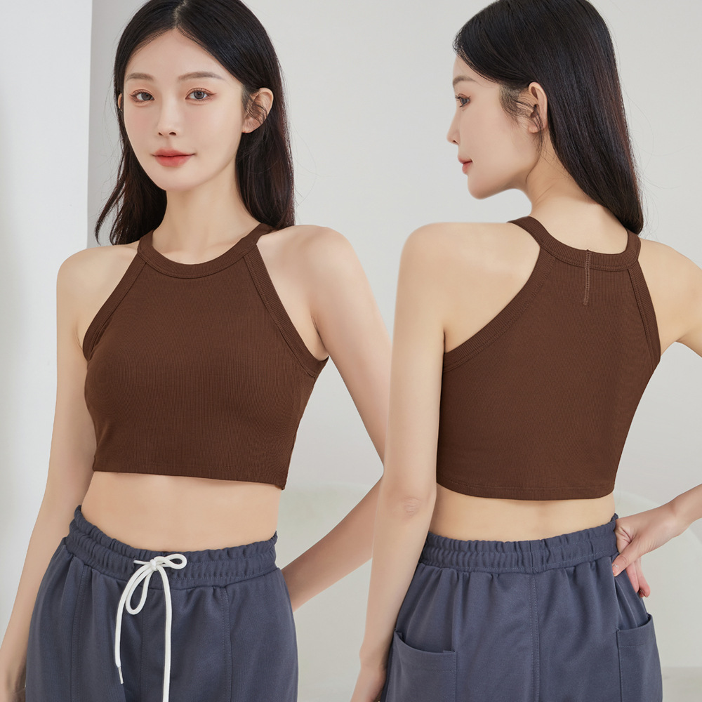 Cropped halter vest with chest pad one-piece sling inner and outer wear solid color bottoming top beauty back I-shaped top