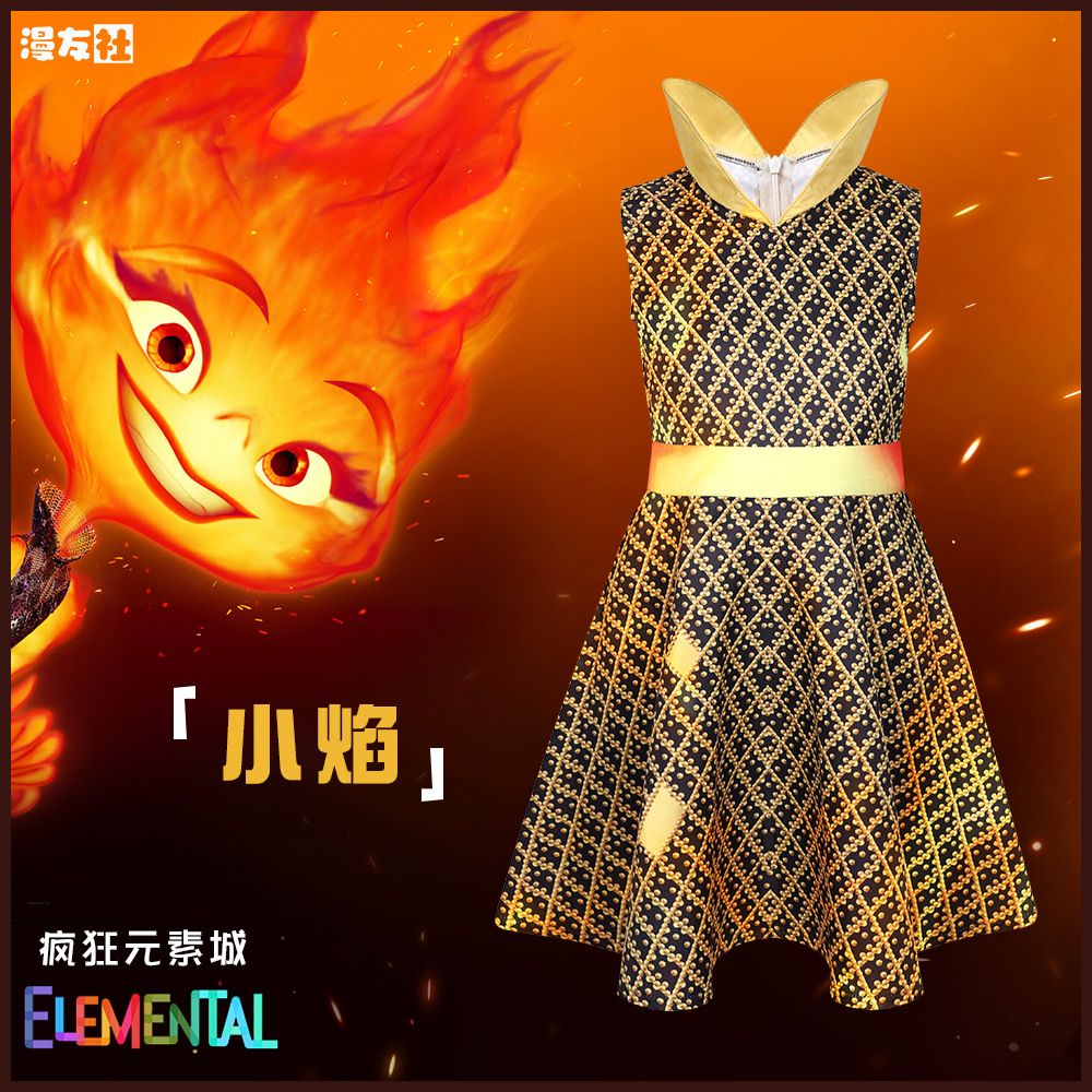 Halloween cos Animated Movie Crazy Element City cosEmber Fire Wade Water Long Dress Party Dress