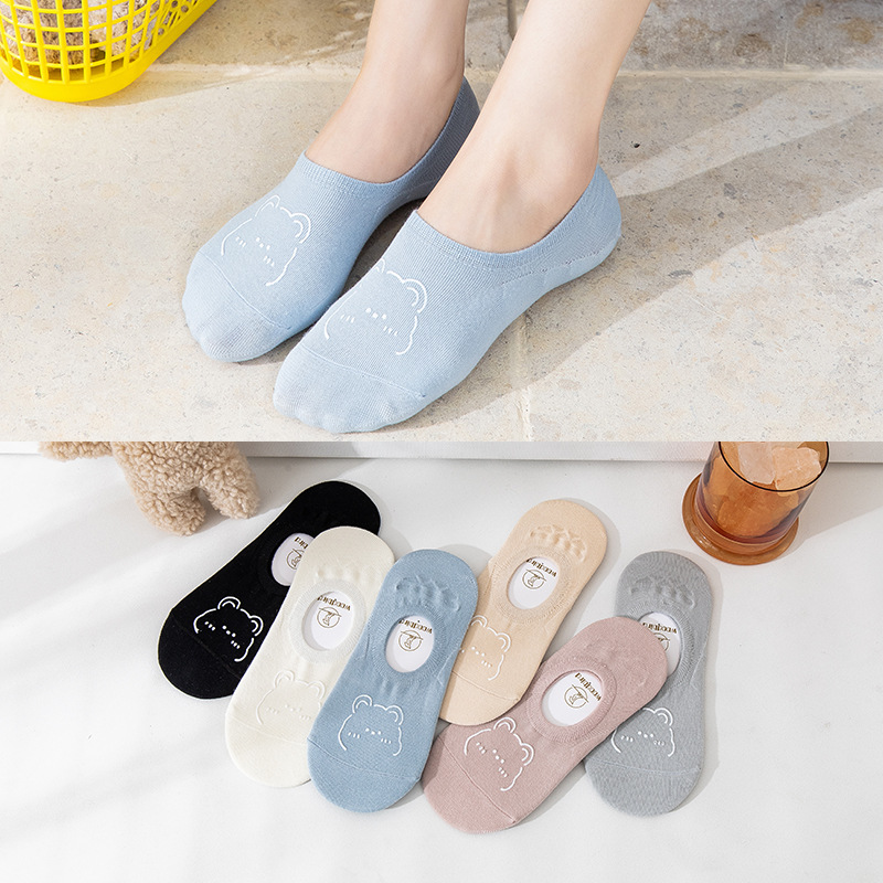 Spring and Summer new socks women’s Japanese hot stamping bear women’s socks low-cut women’s cotton socks breathable non-slip invisible socks